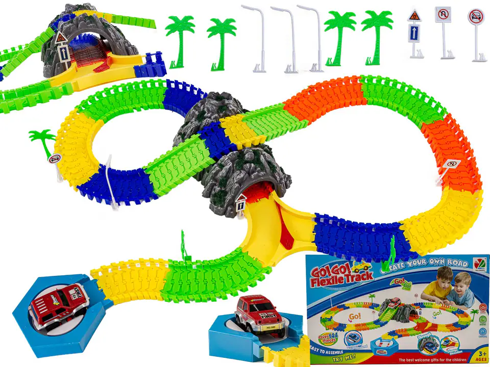 Small handles will have no problem connecting, disconnecting and laying these innovative, serpentine track elements. The connected elements can be freely twisted and twisted, which allows you to arrange an infinite number of configurations.
