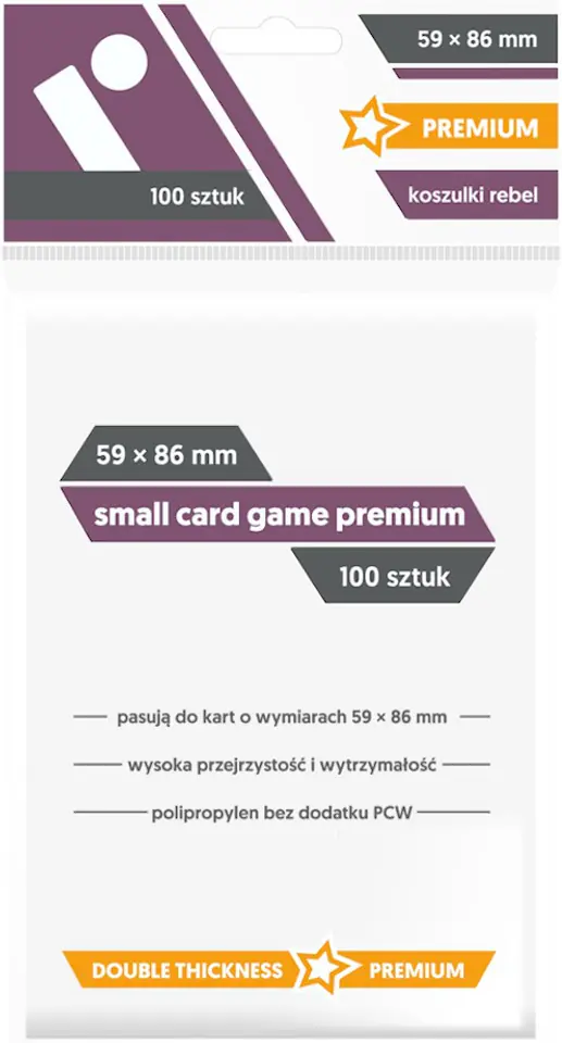 The package contains 100 sleeves for cards with a size of 59x86 mm with double thickness.