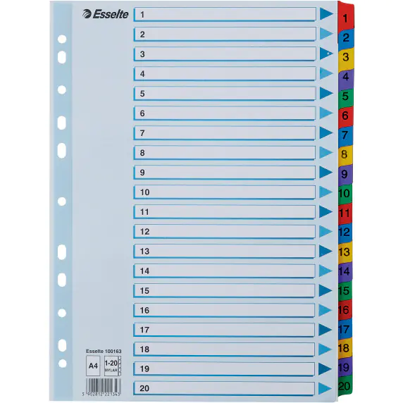 Cardboard spacers MYLAR A4 1-20 white 100163 ESSELTE