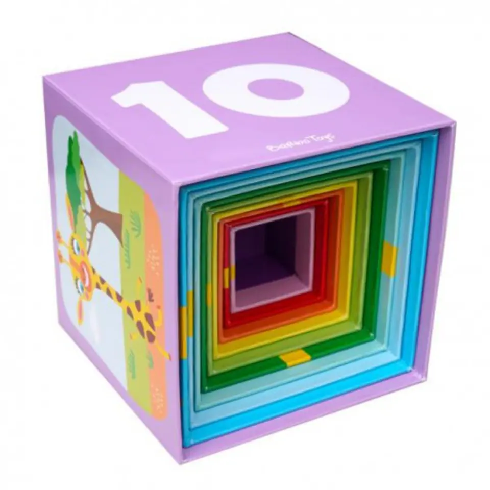 Cardboard Tower, Pyramid, 10 bricks, Safari, Cardboard Tower, Pyramid, 10 bricks, Safari, Little Bright OnesA set of 10 beautiful, colorful, shiny and light cubes made of thick cardboard. Each of the boxes is decorated with beautiful illustrations of exotic animals. Building a tower out of them will be great fun, and knocking it over will be a lot of fun. An excellent set, developing many skills such as: counting, matching, sorting, or recognizing numbers, colors and shapes. Adapted to the small hands of the child, stimulates motor development in early childhood, strengthens the muscles of the fingers and hands. Each of the walls of individual boxes hides a different challenge: remember your favorite animals, start playing with numbers and geometric figures. When the game is over, the boxes can be hidden in each other and then put in the largest box with a practical handle. Product details: Set of 10 cardboard boxes with exotic, fairy-tale animals. It encourages the development of fine motor skills, learning about colors, shapes and numbers. Boxes, blocks made of thick, coated cardboard. Each box has a number on one of the walls, and the corresponding number of items on the other. On each box there is an illustration of an animal, e.g. a monkey, an elephant, a lion, a giraffe, a tiger, etc. Packed in a beautiful box with a practical handle. Dimensions of the tower after laying: 15 cm x 15 cm x 86 cm. Package dimensions: 15 cm x 15 cm 15 cm. Age rating: 2+. 5537