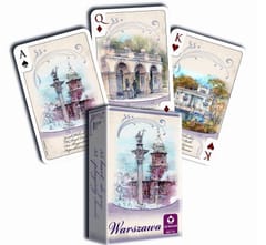 The package contains a deck of cards with beautiful hand-painted watercolors of the largest monuments.