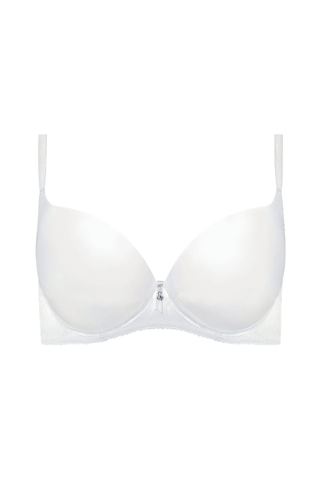 Klasyczny biustonosz typu push-up delikatnie modelujący i unoszący biust. Miseczki bezszwowe, formowane termicznie, obszyte jednolitą dzianiną gładką. Plecy wykonane z tej samej dzianiny.