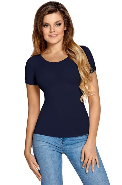 Smooth, basic high-quality blouse, which will perfectly fit into many stylizations. The excellent weight of the fabric makes the blouse fit well, is soft and plastic, and at the same time gives exceptional comfort. On a daily basis, it will be a great companion even for ordinary jeans. Model with short sleeves. Composition: 94% viscose, 6% elastane.