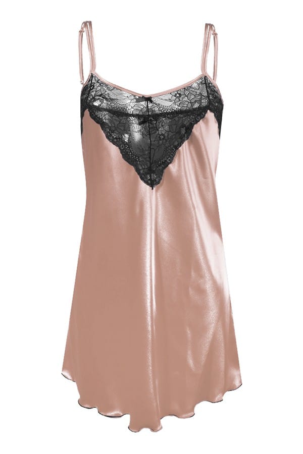 Satin nightshirt with rich, lace finish at the neckline. On thin, adjustable straps. Very feminine.