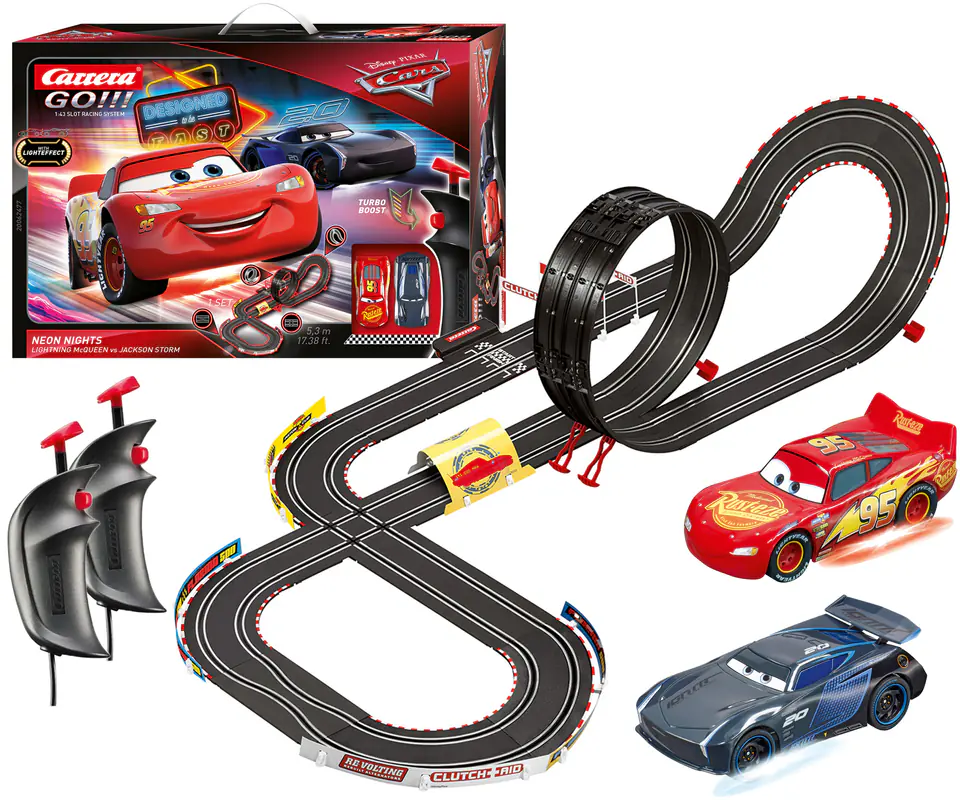 Carrera przy stworzeniu tego produktu przyłożyła ogromną wagę do odtworzenia wszystkich detali oryginalnych postaci z filmu. McQueen i Jackson Storm mogą się ścigać zderzak w zderzak podczas wyścigów w super szybkim tempie.