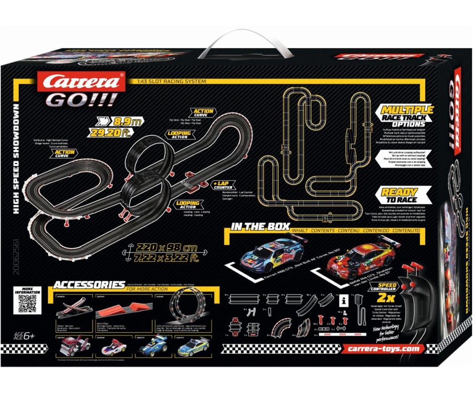 Zabawa z torami marki Carrera to połączenie wielkich emocji, prędkości i dobrej zabawy, która pochłonie dużych i małych. Każdy chłopiec i niejedna dziewczynka pokocha wyścigi, dzięki torom poczują się jak prawdziwi, rajdowi kierowcy.Carrera GO!!! DTM High Speed Showdown to zestaw torów ze Świata Wyścigów Carrera. Długie proste, zapierające dech w piersiach zakręty, przycisk turbo i akcesoria do toru wyścigowego dają Ci szansę pochwalenia się niesamowitymi umiejętnościami sterowania! Tor wyposażony jest w kontroler z turbo doładowaniem oraz najszybsze samochody na licencji DTM; Ferrari 488 GT3 i BMW M4 GT3. Autka załączone w zestawie wykonane zostały z najwyższą dbałością o szczegóły. Barierki ochronne zapewniają prawdziwą atmosferę toru wyścigowego. Zakrzywione zakręty i pętle dodadzą dodatkowej dynamiki w wyścigu. Wykorzystaj swoją trasę i elementy akcji na innych torach 1:43 Carrera!Tory są łatwe w montażu i demontażu, co zawdzięczają unikalnemu systemowi zatrzasków łączących. Można go dowolnie rozbudowywać dodatkowymi elementami, jak również zmieniać samochody na inne w danej skali Carrera GO!!! więc można z łatwością dodawać nowe pojazdy i zmieniać rywalizujących na torze bohaterów, takich jak pojazdy z Formuły 1, sportowe auta GT, a także auta z licencjonowanych serii jak Disney, Mario Kart czy Marvel.Uwaga! Torów nie należy ustawiać na miękkim podłożu (tj. dywan, wykładzina).CHARAKTERYSTYKA PRODUKTU: