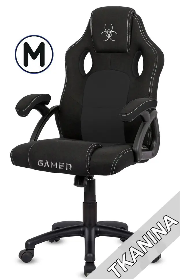 Swivel chair, for gamers, desk chair - CARRERA M BLACK FABRIC