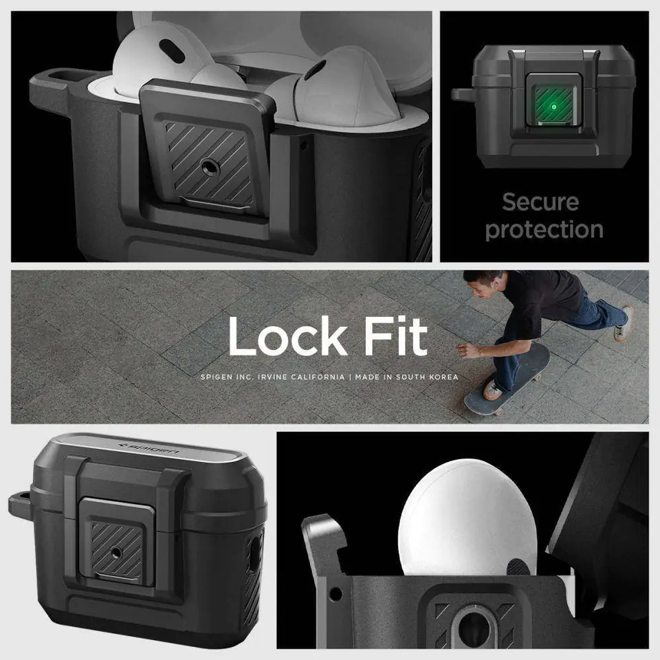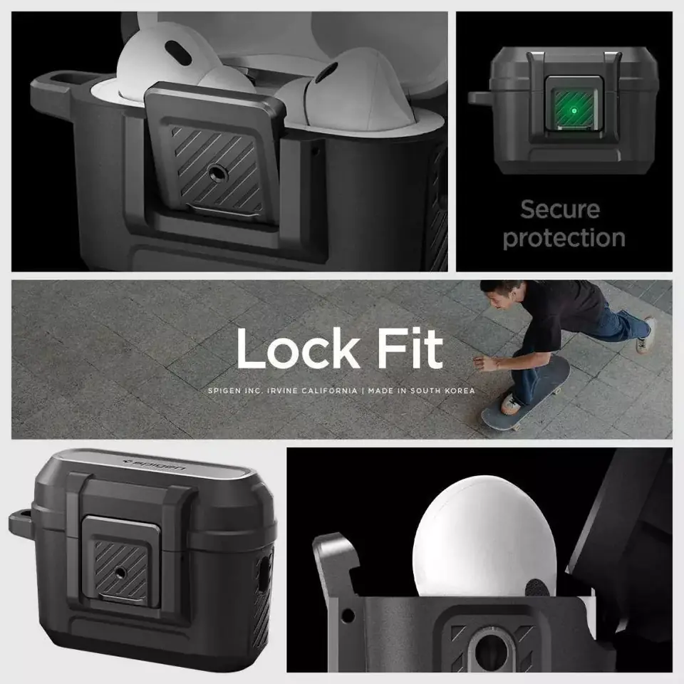 The Lock Fit armored case from Spigen equipped with a protective locking mechanism will work in all conditions.