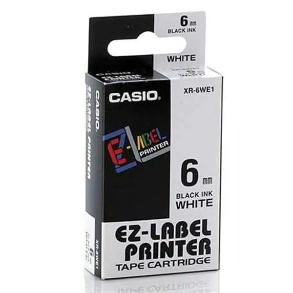 Casio original label printer ribbon, Casio, XR-6WE1, black print/white backing, unlaminated, 8m, 6mm