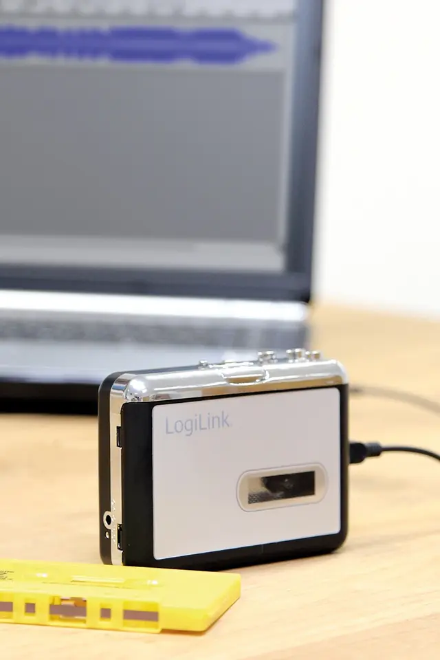 Cassette player with USB connector from LogiLink. Suitable for digitizing audio cassettes via the USB connector directly on the PC. Thanks to the headphone output can be used as portable cassette player for the road. Power is supplied via USB or 2x AA batteries (batteries not included). Digitizing software is included.
