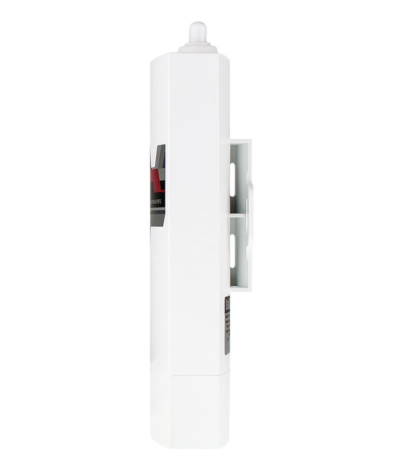 The device has two rod external omnidirectional antennas with hermetic connectors, one for the LTE band and the other for WiFi (MIMO 2.4GHz) It is equipped with 2 Ethernet ports with PoE, SIM card slot, DC power connectors: 5V (micro USB), 12V, 24V (passive PoE), 48V (passive PoE) and LEDs informing about the signal strength