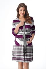 Charming and elegant striped nightcap, made of cotton. Zippered, with pockets and a belt at the waist. Without hood. Very good quality and Polish manufacturer. Composition: 100% terry cotton.