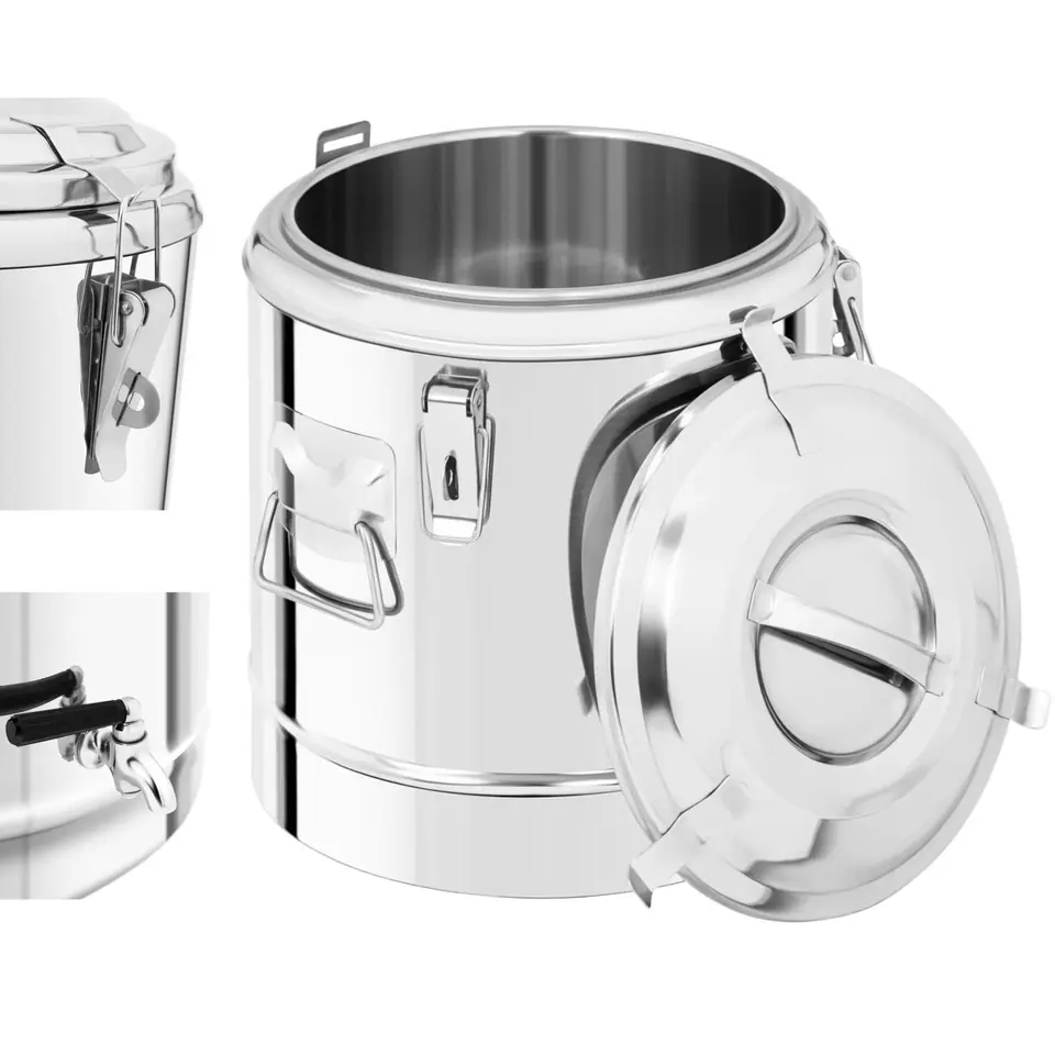10011208 The catering atmosphereRoyal Cateringtransport of large quantities of food and beverages, while maintaining their warmth, they will maintain their temperature up to 12 hoursthe roof ensures convenient pouring and prevents spillage of liquids withstrengmark stainless steel latches conveniently carry Product features: