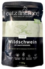 Wild boar 70%, venison broth 28.8%, minerals 1%, grape seed oil 0.2%