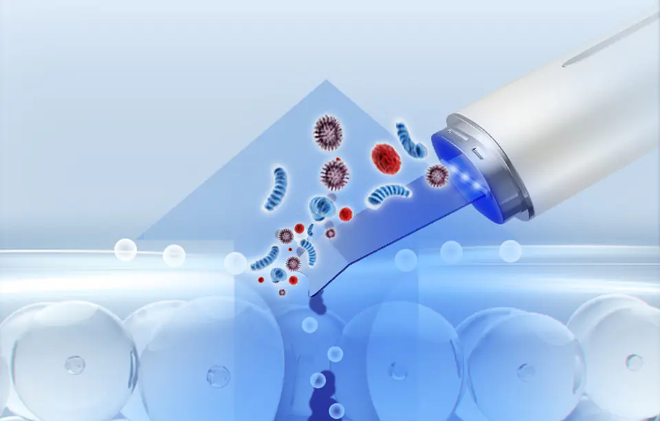 Ultrasonic cleansing of 28000 Hz in combination with blue color therapy, makes the peeling effectively remove blackheads and other impurities. It penetrates into the dermis, narrows pores and gives the skin a youthful appearance. At the same time, it is safe and does not irritate. It benefits from the absorption of positive ions that penetrate into the deep layers of the skin, thoroughly cleansing it.