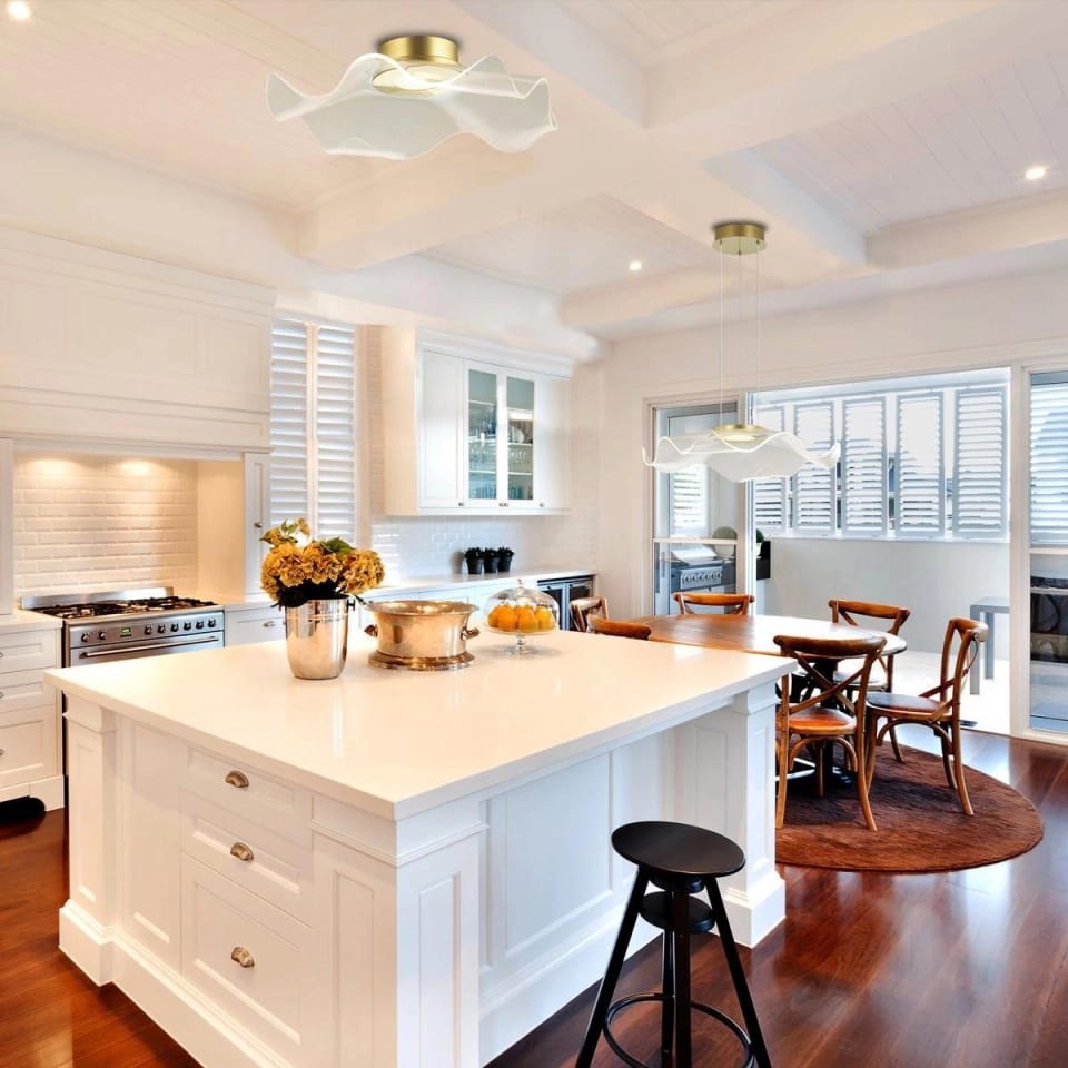 Just an unusual lamp. It is large, but not overwhelming, It is ornate, and at the same time nobly simple. Her unusual lampshade resembles a veil blown in the midday sun, after which the light scatters clearly. The lampshade is made of transparent acrylic with a fine pattern. Delicate white dots not only decorate it, but also scatter the LED light source over the entire surface. Acrylic lampshade is definitely easier to clean, more durable and safe than its glass counterparts.