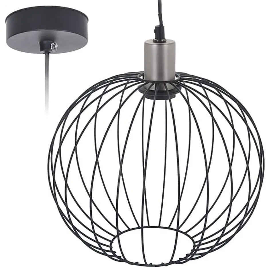 Ceiling lamp wire chandelier pendant lamp black metal 30X24CM Round ceiling lamp made of thin stamens of durable and solid metal and forms the whole structure of the lampshade. The black color of the lamp looks stylish and fits into any style in the interior. Technical specs: Dimensions:30 x 24 cm, Cable 90 cm, Color:black, Material: metal, Power supply: Max bulb power 40W, E27