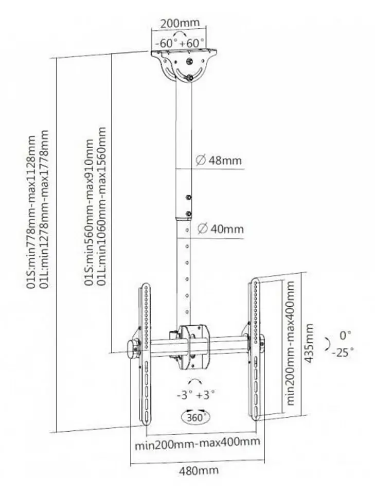 Ceiling mount LCD/LED 32-55 inches, 50kg