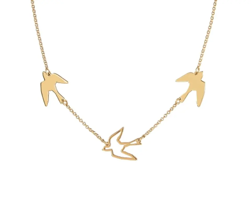 One swallow does not make spring... but jewelry with three swallows certainly gives joy and is a great addition to many stylizations. Chain length 44cm + 8cm extension. Element length 10cm.
