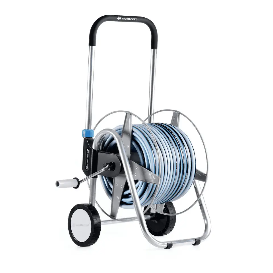 - Hose trolley made of high quality steel and aluminum.