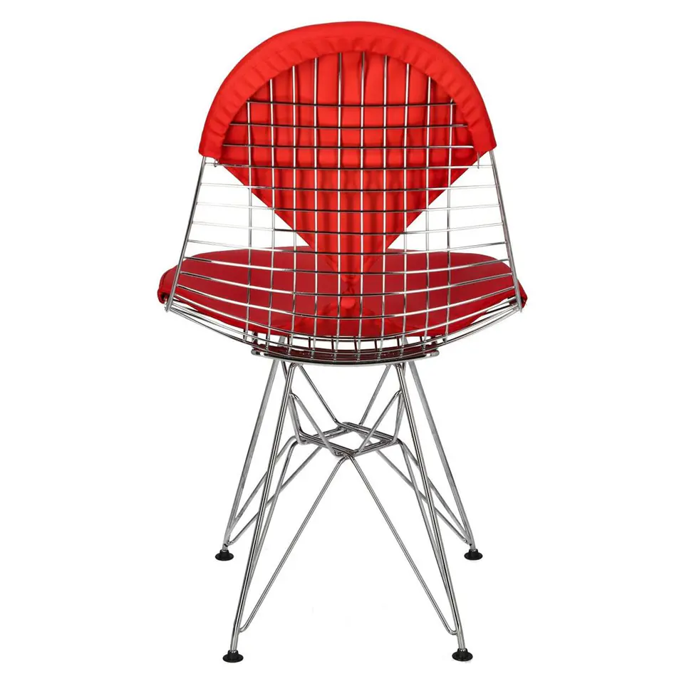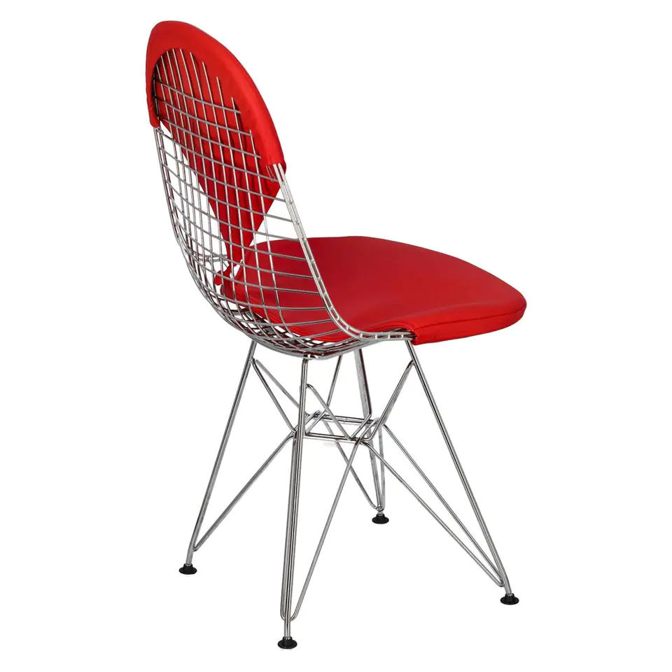 The main and most striking feature of this chair is made of chrome-plated wire, which thanks to the ergonomic shape and high density of interlacing provides high comfort to the seater. The enormity of the work that needs to be put into the production of the chair can be proved by the fact that the seat itself has over 320 point welds. To increase the comfort of the user, the chair is finished with cushions on the seat and backrest. However, these pillows can be easily removed. Parameters: Seat height: 45 cm Seat width: 46 cm Depth 40 cm Leg thickness: 1 cm Carton dimensions: 55x55x49 Pieces per carton: 2 Weight:14 kg