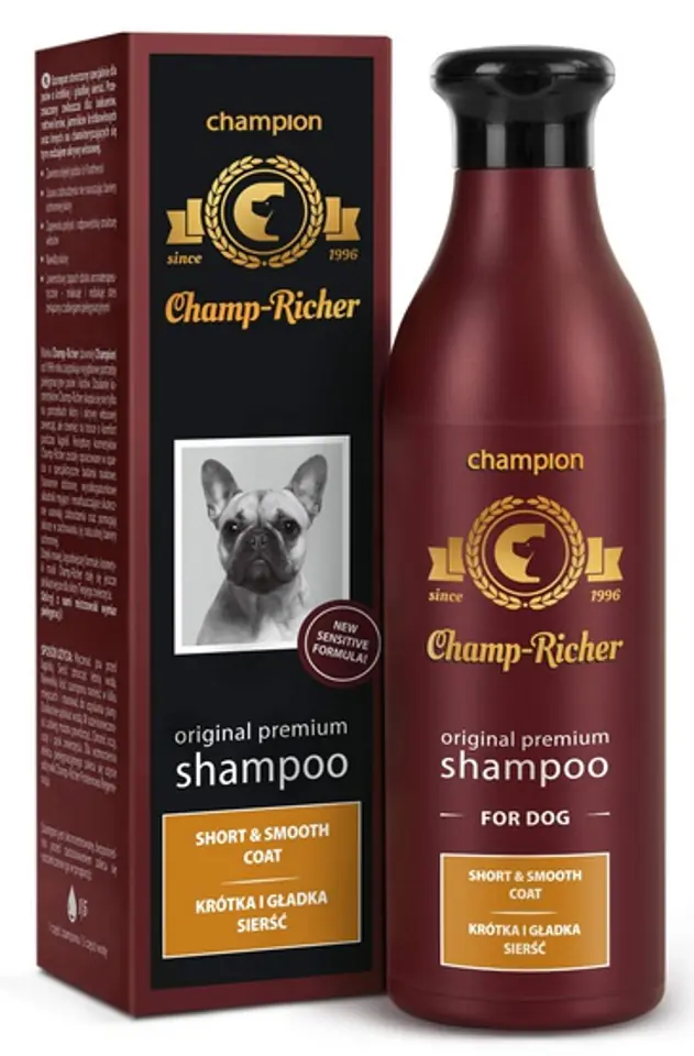 Comb the dog before bathing. Wet the coat with lukewarm water. Apply a small amount of shampoo in several places and massage until foam is obtained. Rinse thoroughly with water. If necessary, the treatment can be repeated. Protect the eyes, ears and muzzle of the animal. To enhance the care effect, it is recommended to use Champ-Richer (Champion) Protein Regeneration conditioner.