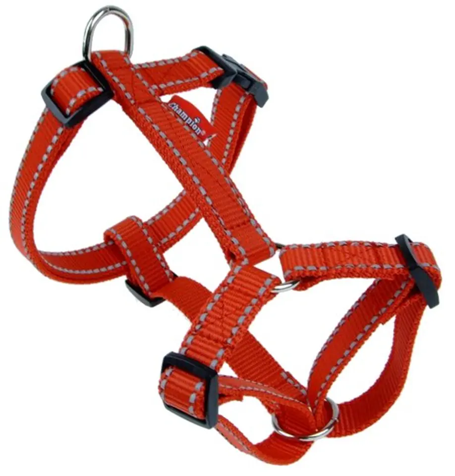 Shoulder straps made of durable tape with reflective elements. Put on over the head, with a clasp behind the paws