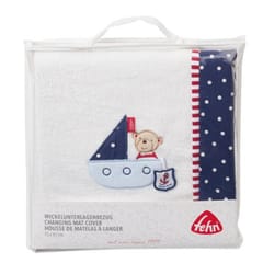 Changing pad cover, Teddy bear from the collection: Ocean Changing pad cover, Teddy bear from the collection: OceanSoft terry cover for all changing mats. It's the perfect first playground for kids. Soft materials ensure the safety and optimum comfort of the child from the very beginning at home and on the go. Made of the highest quality terry, which allows you to use it also as a towel. Easy to fold into a convenient package. Fits any bag. It has a comfortable velcro closure. Textures and surfaces encourage touching, hugging and stroking. Cute details want to be explored by your child. The baby can use it to play, lie down, crawl or sit, and finally to fall asleep. Easy to fold into a convenient package. It can act as a towel. Fits any bag. Mat size: 78 x 85 cm. Packed in an aesthetic cover closed with Velcro. Material: terry - 60% cotton, 25% polyester. Finish - 60% cotton, 25% polyester. Washable at 60 degrees. Perfect for use on the go. Package dimensions: 29 cm x 29 cm. All products of the German brand FEHN are safe for children from 0 years. They are made of the best quality materials. Tested for safety by independent testing institutes.