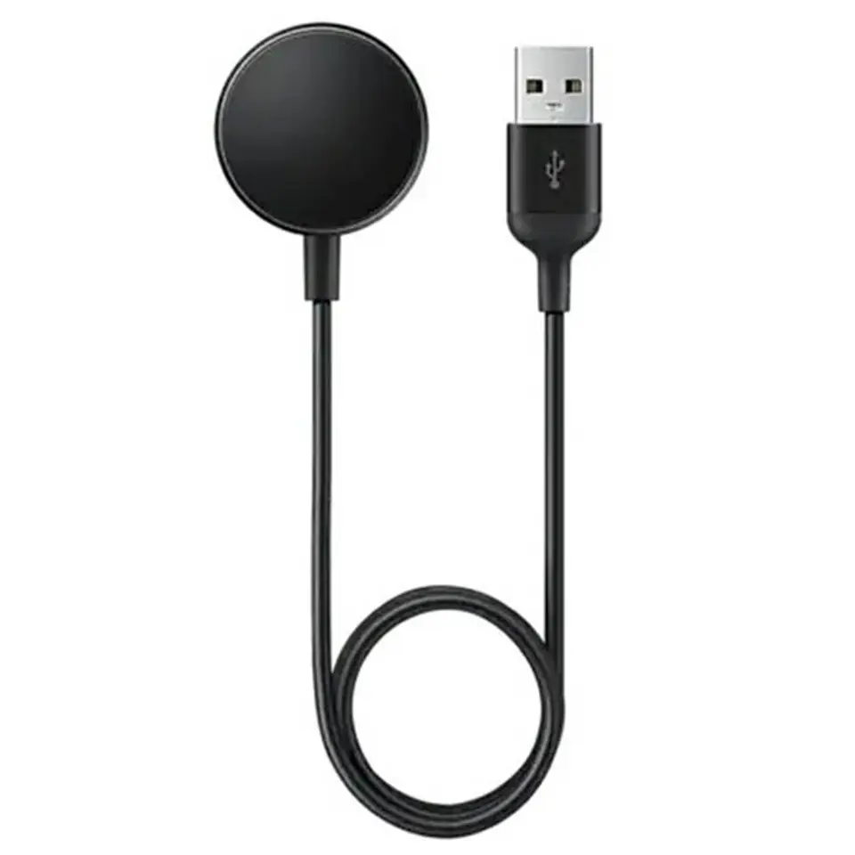 Slim and compact design, this induction charger blends in perfectly with Samsung's modern design. Simply place your Galaxy Watch Active2 on the wireless charger and it will start charging itself. It's that simple. Thanks to the magnetic attachment of the watch to the charger, it will lie on it properly every time. Galaxy Watch Active2 inspired us to create a portable wireless charger that you can take with you wherever you go. Enjoy the incredibly light yet extremely durable design of this compact device. Compatibility:Galaxy Watch 3 / Active / Active2USB Type A interface Dimensions (WxHxD)33.75 x 33.75 x 8.95 mm Cable length0.8 m Weight30 g Input voltage5 V Output voltage5 V
