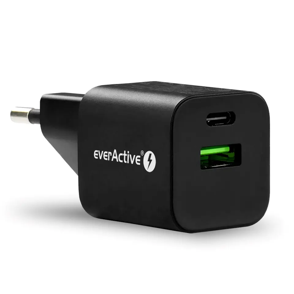 everActive GaN SC-390QB mains charger with USB QC3.0 and USB-C PD PPS 30W socket