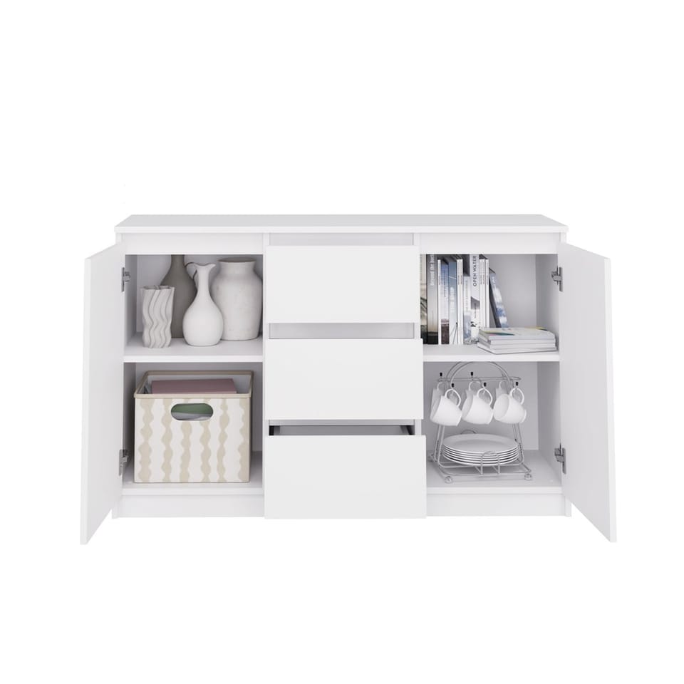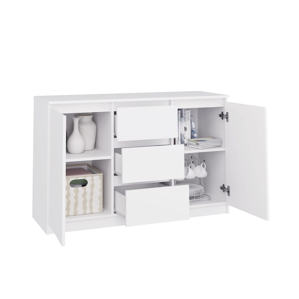 The interior of the chest of drawers consists of shelves and three drawers that will help when arranging things. It will be easier to find what you are looking for.