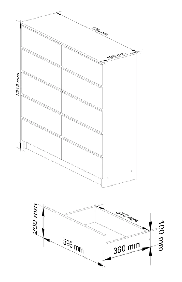 CHEST OF DRAWERS K 120cm 10 DRAWERS