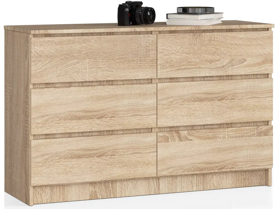 If you are looking for an exceptionally capacious, but neat piece of furniture, the K120 chest of drawers from our assortment is a great solution! Made of high quality laminated board and equipped with up to 6 drawers, this chest of drawers is an ideal choice for the bedroom, living room, hallway or office. It owes its elegant appearance not only to its tasteful and functional design, but also to the fashionable color of Sonoma oak.