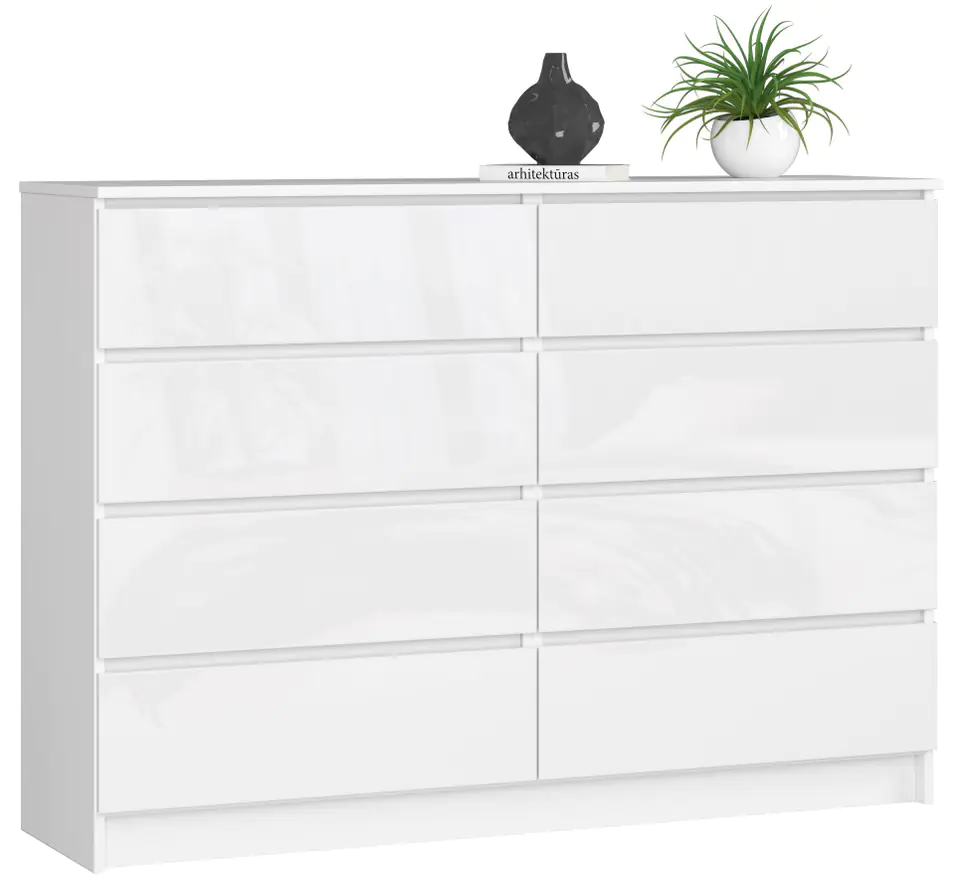 CHEST OF DRAWERS K 140 cm 8 DRAWERS ACRYLIC WHITE HIGH-GLOSS