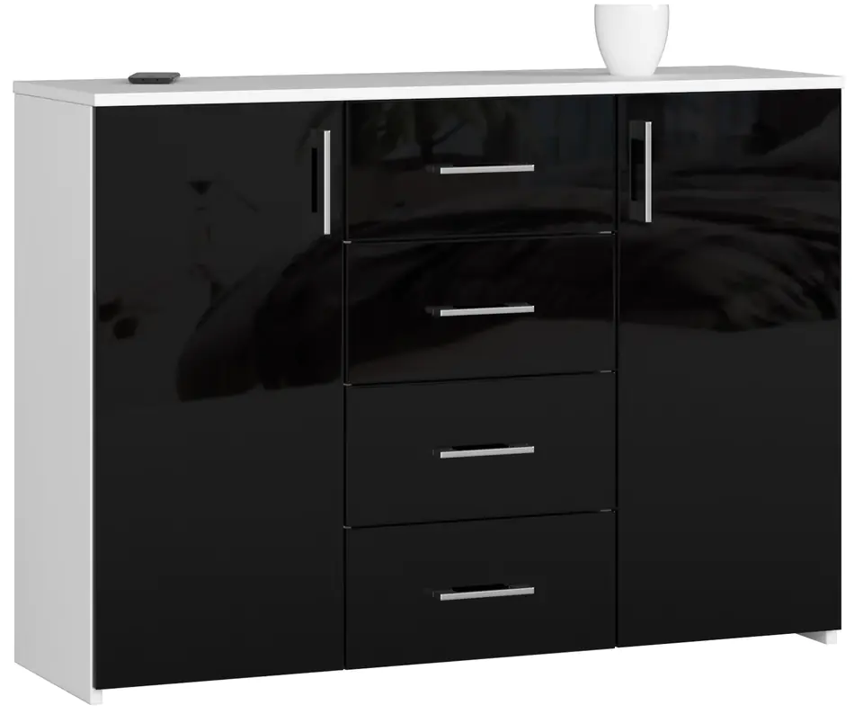 CHEST OF DRAWERS K 45 110 cm WHITE / GLOSS BLACK