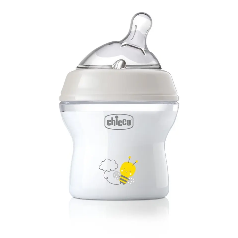 Chicco's NaturalFeeling bottle line is the only line of feeding bottles that follows the natural evolution of the way the baby sucks, passing, with the help of interchangeable pacifiers, from a simple squeeze of milk in the first 4 months of life, to a proper, intensive sucking. It was created to provide the most natural possible feeding in a situation where breastfeeding is not possible or limited. Bottles are ideal for alternating feeding, which means an easy transition from breastfeeding to bottle feeding and vice versa. This is the only line to which anti-colic, evolutionary pacifiers of various shapes and constructions, inspired by the structure of the female breast, have been designed to make the feeding process as close to natural as possible. The phenomenon of the NaturalFeeling bottle concept is based on different pacifier shapes that adapt to the stage of oral development and follow the physiological development of the baby's sucking at a given moment in his life. There are 5 pacifiers available in the line with different shapes and flows, adapted to the way of sucking and the age of the baby. The most unique, diagonal pacifier, occurs in two flows (slow and medium) and is ideal for the youngest children (from 0-4 months of age). Its characteristic structure resembles a woman's breast, with a wide pacifier base and a curved tip. This design is ideal for children perfecting the sucking process, when the wide base fills the baby's mouth, maintaining a method and pace of sucking close to natural. In addition, the shape of the pacifier supports the correct position of the baby during feeding and always remains filled with milk, which reduces swallowing of air and prevents the formation of colic. A simple pacifier is ideal for older children, recommended from 6 months of age, when the suction process is shallower and the base of the teat can be narrower. A simple pacifier is available in 3 flows: fast, three-flow and suitable for serving pork. To make the feeding process as natural as possible, the tip of each pacifier, in the place of attachment to the baby's mouth, is covered with a velvety finish, the so-called "Mum effect". Natural Feeling bottles are available in 3 capacities: 150, 250 or 330 ml. Ergonomic shape of the bottle with a constriction in the middle, makes it easy to hold comfortably during feeding. The wide thread of the bottle makes it easy to dispense food. The bottles are sterilizable, BPA-free, clinically tested and made in Italy.* all NaturalFeeling bottles have been clinically tested and 9 out of 10 children accept them immediately after administration.