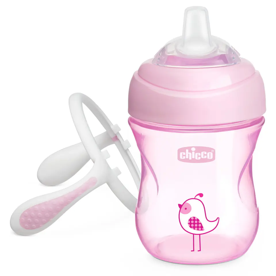 The ergonomic silicone mouthpiece is extremely soft and flexible. It is ideal because it is suitable and gentle for the child's gums. The cup has 2 handles that allow the child to comfortably hold it in his hands and reduce the frequency of falling the cup on the floor. Thanks to the handles, the child also trains small motor skills. The cup uses a non-drip solution - a special valve protecting against spilling liquid.