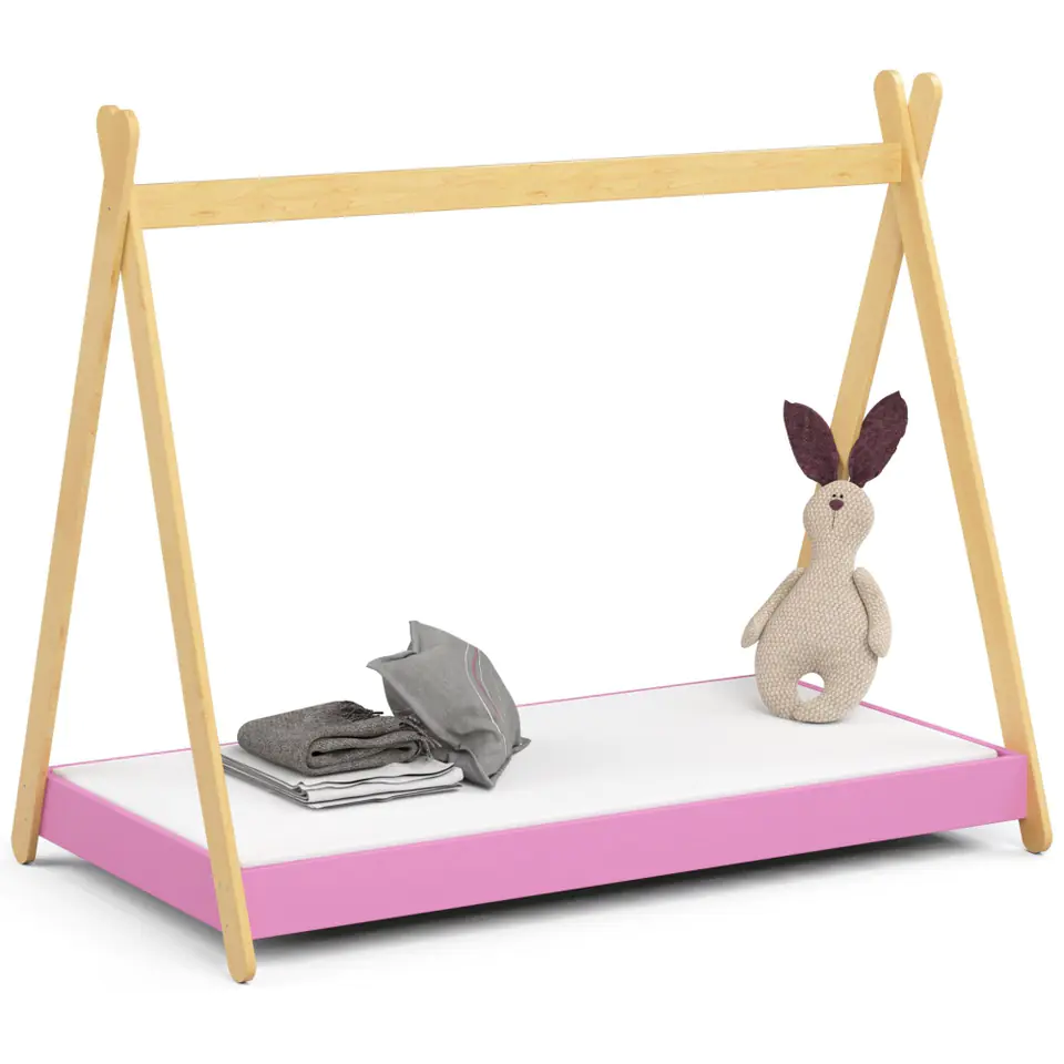 GEM bed size 160x80 cm with a mattress. A complete bed for a boy or a girl for a children's room. Color pink. Bed strength up to 150 kg.
