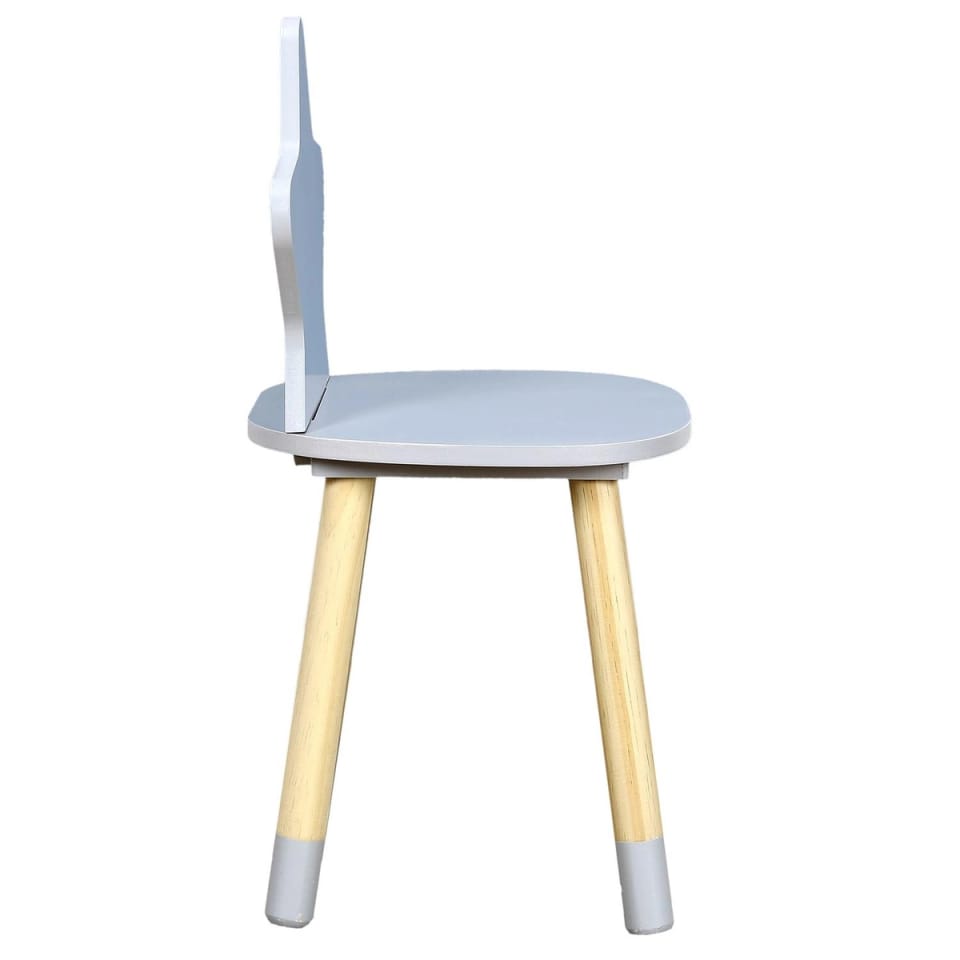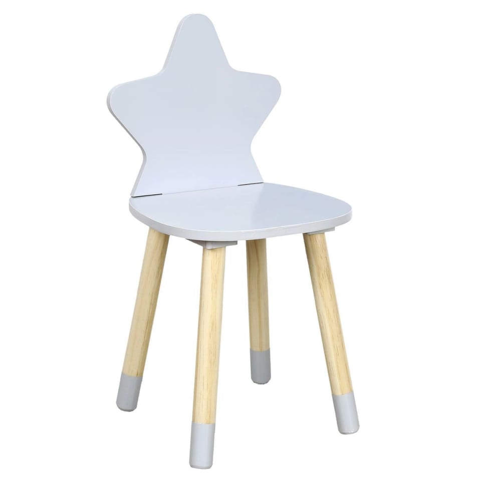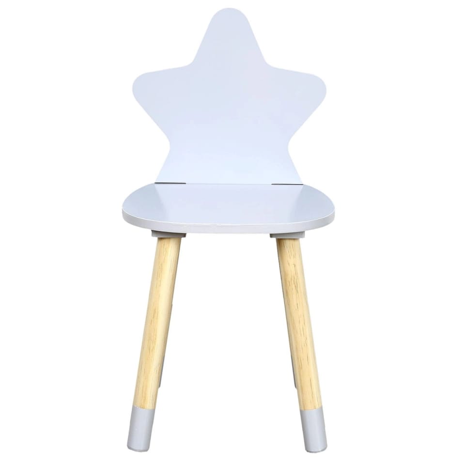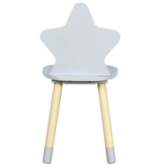 Puppe is a chair with a star-shaped backrest that fits perfectly into a small child's room. The Puppe chair is made of pine wood varnished and painted gray. A children's chair is the perfect seat in a unique form. The legs of the chair in a natural color have been finished in gray. The chair has been manufactured with care for the smallest details, from the best quality materials and components, thanks to which it is not only durable, but also safe. Package dimensions: 42 x 36 x 32 cm