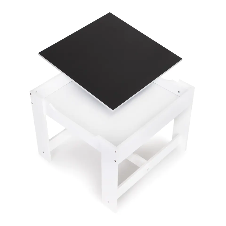 - Reversible, removable table top with chalk board