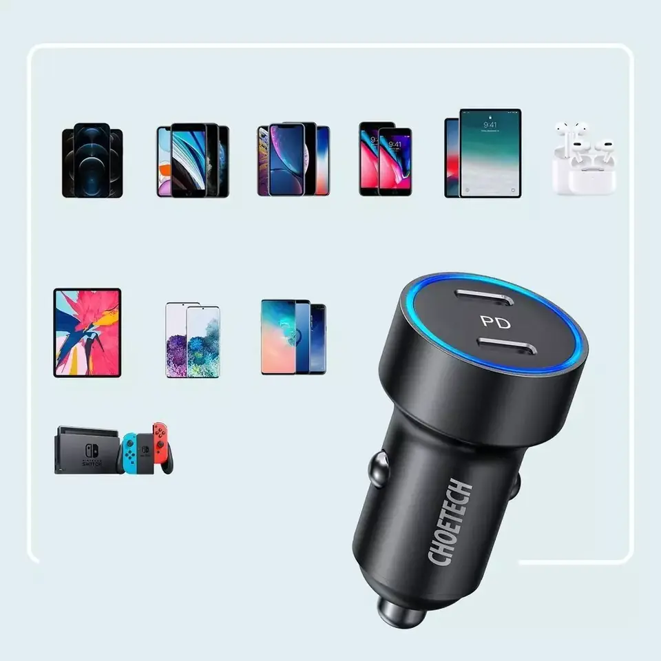 CHOETECH C0054 BLACK ca r charger 2xUSB C Power