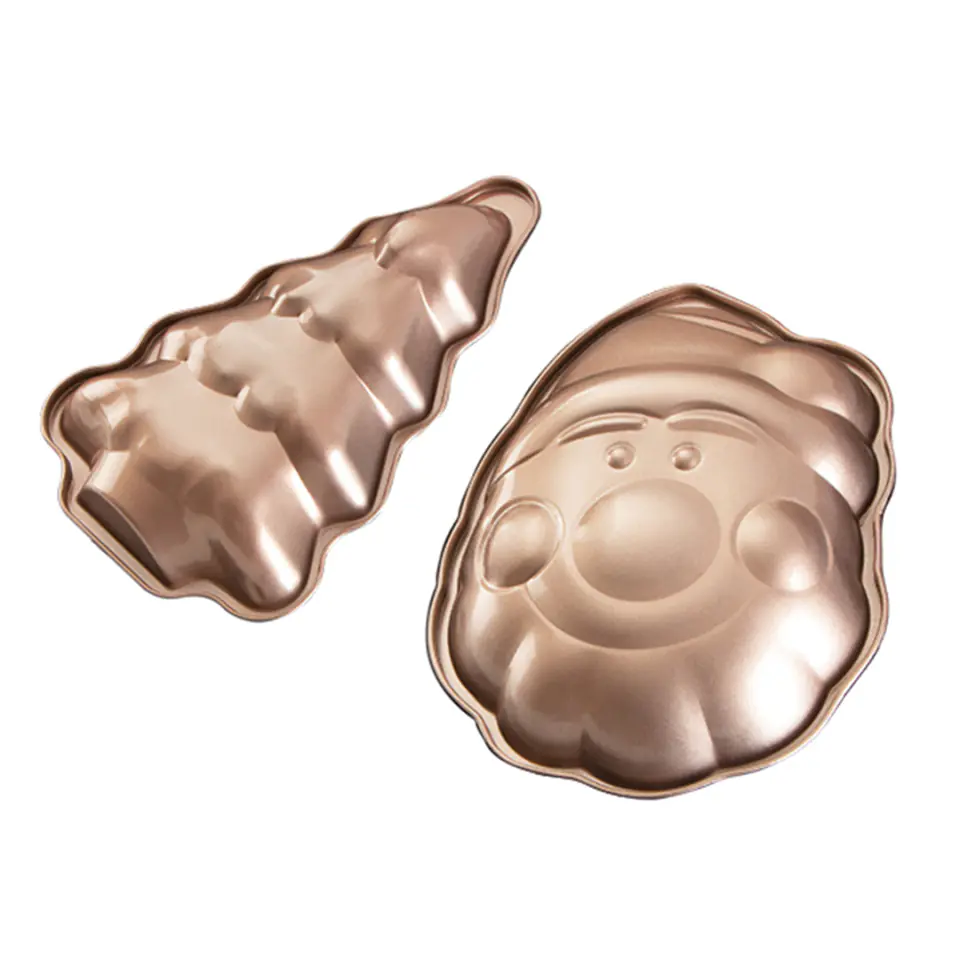 Forms for Christmas pastries in the shape of a Christmas tree and Santa Claus from the BERLINGER HAUS series ROSE GOLD. Made of steel sheet, covered with a non-stick coating in rose gold.