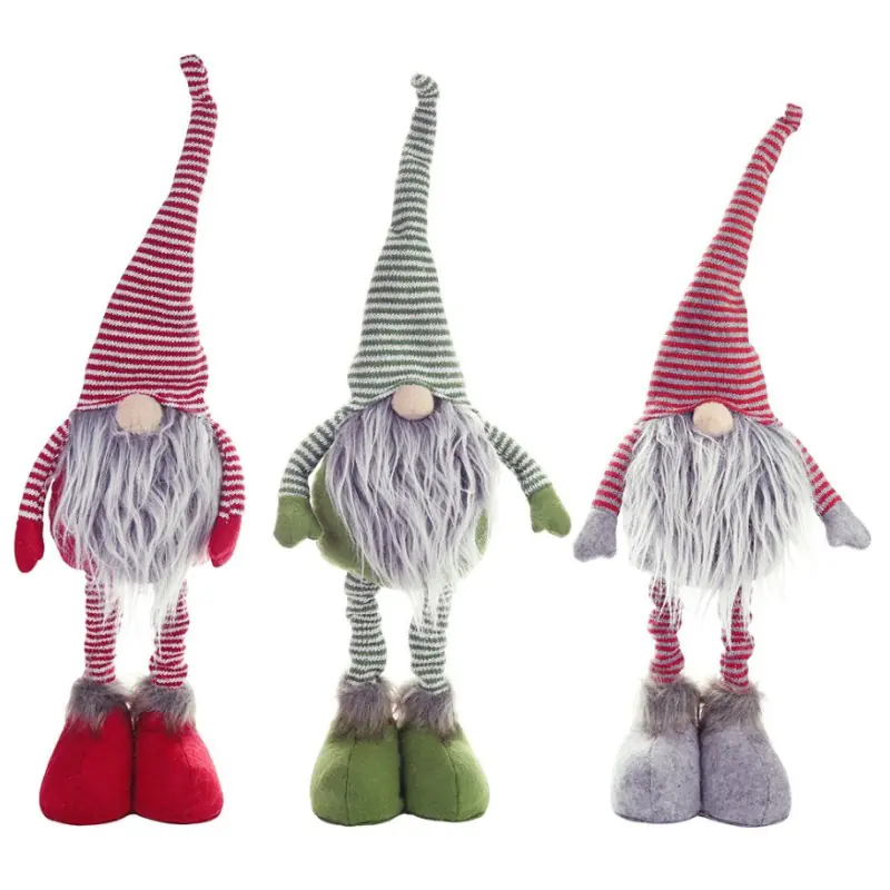 Standing gnome on pull-out legsFilled with plushTo stabilize the standing position in the legs they have sand - which additionally burdens themWeight:300gDimensions:Maximum height : 53 cm Minimum height : 41 cm Width: 18 cm