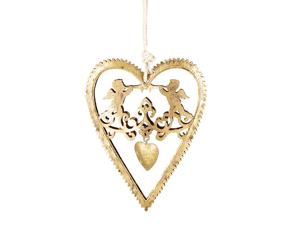 Christmas tree decoration - golden heart - metalwork