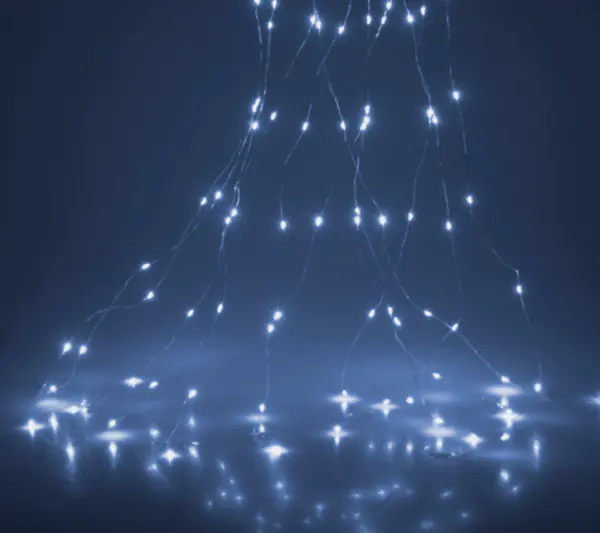 Christmas tree lights on a wire 40 LED cold white on batteries Lamps on the wire powered by batteries are a decoration that can be used literally anywhere, eg as a decoration of the table, window, window sill, chest of drawers in the hallway, as well as lighting Christmas reeds, Christmas tree, etc. Technical data: Number of lamps: 40, LED lamps, 8 wires (5 led each), Lamp color: cold white, Distance between lamps: 10cm, Total length: 43cm, Power supply: 3xAA batteries not included,
