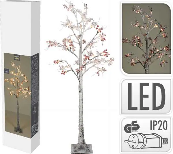 Christmas is an extraordinary time that requires a unique setting. It is worth thinking about additions that will emphasize the character of this magical period. This decorative tree will certainly bring a wonderful atmosphere to the room. The sapling is placed on a high trunk, and snow-capped twigs and red berries add incredible charm to the whole. The decoration is equipped with 120 LED lamps of warm color, which will illuminate it beautifully. The decoration, due to its design, will perfectly fit into any interior, both modern and classic. The mains-powered tree has a 3-meter long cable.