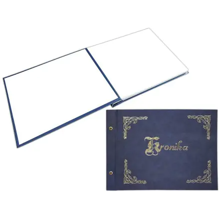 - A3 format, horizontal (415x297 mm). - The block contains 100 cards (200 pages) of high-quality paper with a weight of 120 g/m2 on which entries can be made. - Inside the spine cardboard beams allowing you to paste photos without the effect of "swelling" the chronicle. - Hard cover, bound in bookbinding veneer. - On the cover there is a gilded print made by hot stamping. - Ridge approx. 25 mm wide. - Block connected to the cover with two brass screws. - Product made by hand, very high quality.