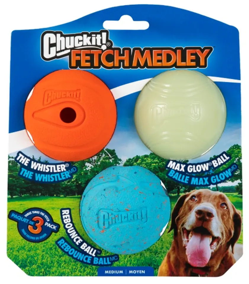 Fetch Medley Medium is a set of 3 different Chuckit balls! in size M!