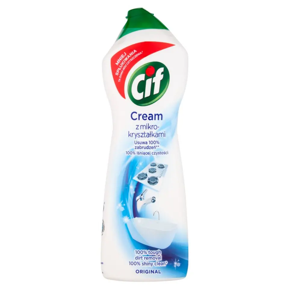 Cif milk with microcrystals - The best formula of Cif milk. It removes 100% of most household dirt for 100% beautifully clean surfaces, easier than ever. The milk penetrates and completely removes the most resistant dirt as: baked fat, burnt food, limescale stains in the bathroom; Its new texture requires less rinsing, so you can enjoy perfect shiny purity right now.