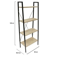 Cilyan bookcase is a unique piece of furniture for modern and loft rooms. The bookcase, thanks to the combination of black color and light oak, looks extremely light and neat. The powder-coated black furniture frame is characterized by high durability, resistance to corrosion, high temperature and mechanical damage, thanks to which it significantly increases the usability and aesthetic value of the furniture. In turn, four shelves are high-quality MDF covered with laminate imitating wood, thanks to which the surfaces of the shelves are smooth and durable. The simple structure is supported by steel rods, which, in addition to the function of the bracket, are also an interesting decorative element. Max. load per shelf: 12 kg